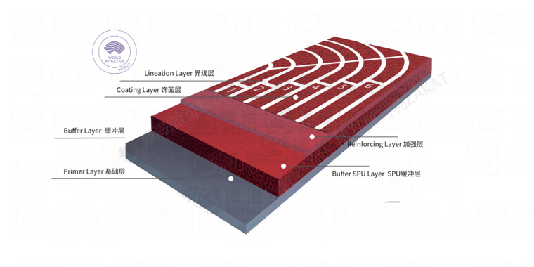 由微發(fā)泡閉孔技術(shù)的聚氨酯底膠鋪設(shè)而成,為世界田徑(國(guó)際田聯(lián))認(rèn)可推薦為各大型國(guó)際賽事運(yùn)動(dòng)員競(jìng)賽和訓(xùn)練專用場(chǎng)地類型,耐高低溫、沖擊吸收。