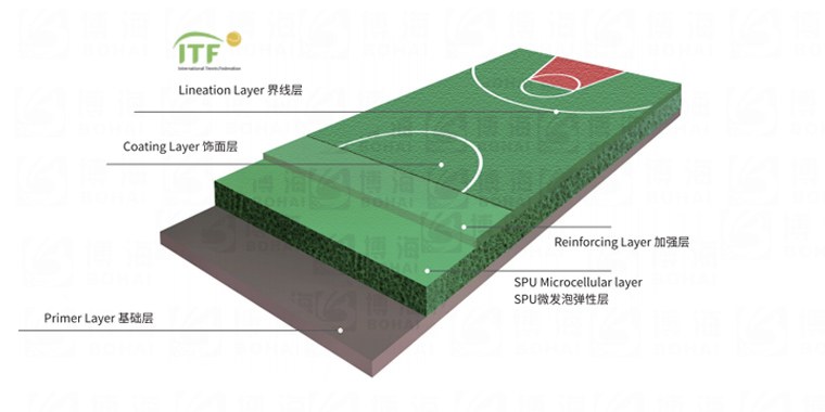 由PU彈性層BH-CS01、加強(qiáng)層和水性面漆耐磨層BH-WB01刮涂組成,該結(jié)構(gòu)具有優(yōu)越物理性能,滿足人體工學(xué)的彈力科技,色彩美觀,施工方便、耐候性能強(qiáng),防滑性好、容易保養(yǎng)的有點(diǎn)。